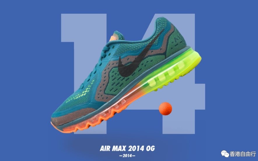 2014年,Air Max家族集各方创意之力设计出一双值得信赖的全新运动鞋。凭藉工程网眼鞋面设计,Air Max 2014 比以往更加轻盈,Max Air 气垫单元更是首次采用渐变双色设计。