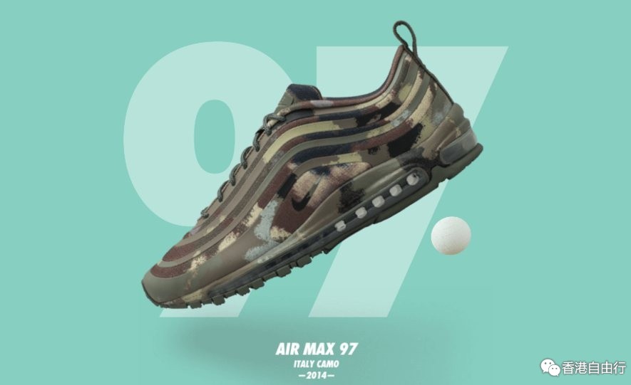 意大利的运动鞋文化和现代的军风设计细节在这款鞋上相互碰撞,彰显了意大利对 Air Max 的热爱。为了突出意大利对这款 Nike 经典鞋款在国际上流行的影响,迷彩图案覆盖整个鞋身,打造出独具意大利风格的 Air Max 系列。
