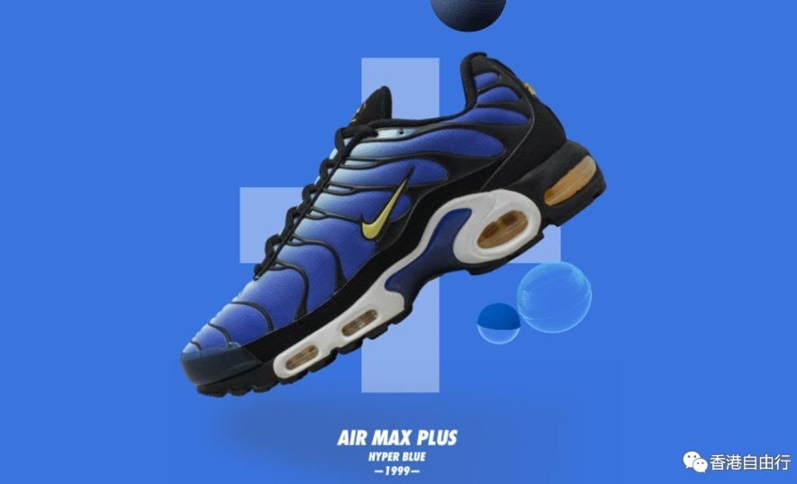 1998年推出的 Air Max Plus 向整个世界展示了 Tuned Air 缓震技术和独特的高接合支撑结构。除了技术上的进步外,这款鞋也迅速在全球带起文化影响。设计师 Sean McDowell 从佛罗里达的黄昏日落中汲取灵感,从而创造出带有传奇色彩的 “Hyper Blue” 原版配色。