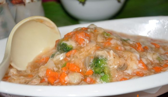 我们先叫了招牌椰青海鲜焗饭, 招牌就是招牌, 很香啊, 外形又好看, 用一个椰子当碗子, 很可爱, 虽然饭是有点湿湿的, 但海鲜味也很够, 饭很入味, 好食!