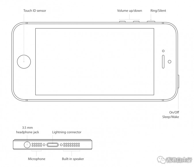 之前一直传闻 iPhone SE 会改用 Lightning 接驳耳机,而取消 3.5mm 耳机插孔。但在官网的机身解构图见到,3.5mm 耳机插孔仍然存在于 iPhone SE 上,大家的耳机终於可以多用一段时间了。