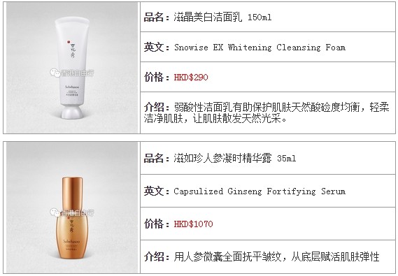 >>Sulwhasoo雪花秀专柜报价