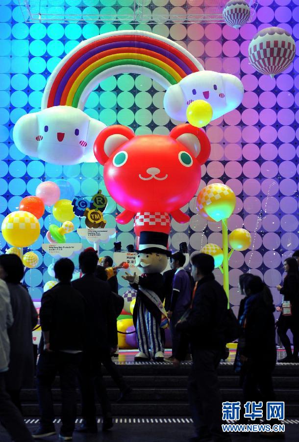 1月9日,香港国际授权展吉祥物在展览入口处为观众表演。当日,香港玩具展、香港婴儿用品展、香港国际授权展和香港国际文具展同时在香港会议展览中心开幕,共吸引超过2600家企业参展,各色参展产品凸显创新元素。新华社记者陈晓伟摄