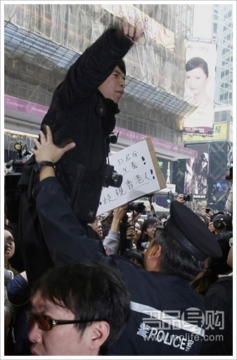 图为香港市民在现场抗议。
