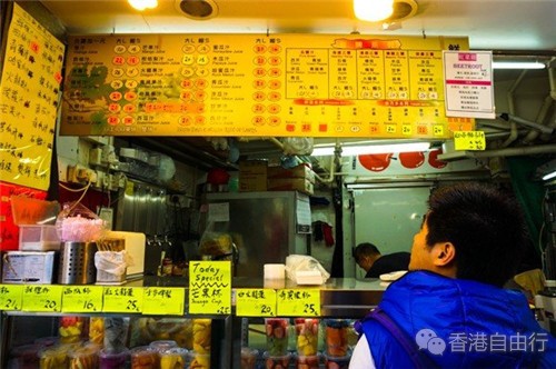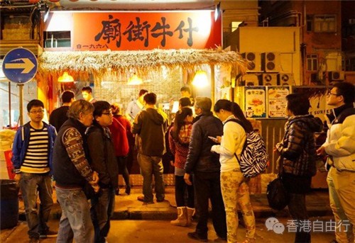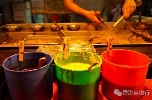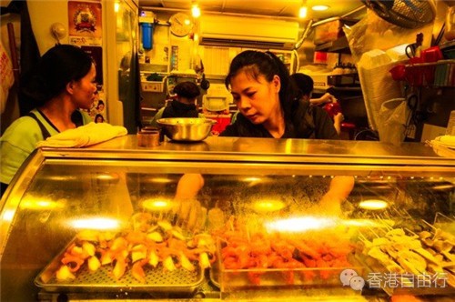 在自己的城市,喜欢在清静的地儿呆着,但是来到异乡,却总爱往热闹的地方跑。前两次来香港都住在港岛,高端大气上档次的酒店楼层很高,俯瞰城市夜色颇为漂亮。这次因为住在旺角,恰巧又是热闹非常的豉油街,真真体会了一番“接地气儿”的港式周末。从旺角地铁站一出来,我就有了种刘姥姥进了大观园的感受。头顶的店招一层层涌过来,抬头往前是看不见尽头的人脑袋。两旁的店铺人声鼎沸,便道上不够行人走,人流都挤到了马路上。每个路口都有asir执勤,荷里活大楼前还聚集了不少“黄雨伞”。豉油街下更是热闹,早在下午各位打把势卖艺的就占好了位置,夜幕降临,有父女卖场也有老爷子演杂技。一直到将近午夜才收工散去。这附近高大上的餐厅不如街角的小食店生意好。逛街走累了,小食摊上可以解决一切需要。鲜榨的果汁抑或铁板鱿鱼;咖喱鱼丸或者卤牛杂。比比皆是的茶餐厅更是生意好到不行,怪不得服务员的脸一个赛一个臭,不愁客人的生意怎么都好做。抛去服务不说,旺角一带的平民小吃味道很是不错。