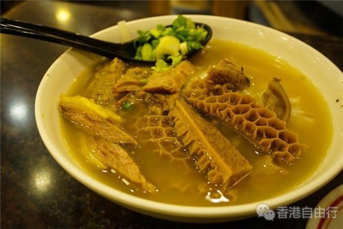 ▼这家牛杂浸在卤汁里,因此特别入味。小哥不做别的,就只负责捞起一块牛肚或者一根牛肠,然后剪成块
