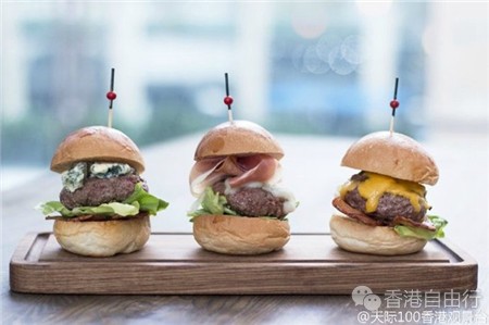 位于天际100西边的Vista@sky100餐厅。面向180度海景,毫无疑问的选择靠窗的位置,一边看风景等日落一边品尝美食。Vista餐厅新推出的轻食牛肉汉堡最得我心,4款不同口味。最神奇的是,居然还有蓝芝士和鹅肝口味,非常特别哦!
