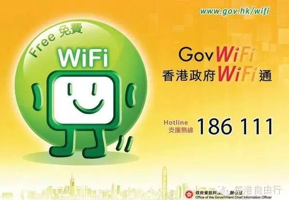 2014年8月正式启动的 Wi-Fi.HK ,是由香港政府所设立的,超过 5000个热点可以免费上网,包括机场、公众电话亭、各大旅游景点、商场、咖啡店、便利店……等地方,只要有上方标志就可以打开你的装置来搜寻 " Wi-Fi.HK " 热点、开启浏览器,阅读并接受「条款和细则及免责声明」,之后就可以使用最少 30 分钟的免费上网。