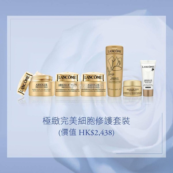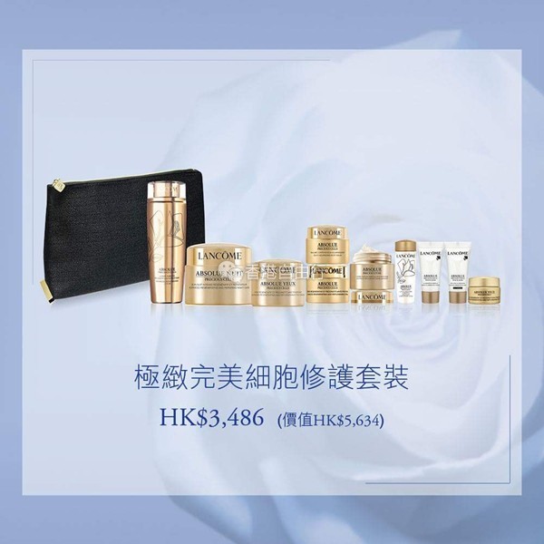 选购Lancôme正价极致完美细胞修护产品满HK$2880,即可获赠一套6件极致完美细胞修护套装 (价值HK$2438)。