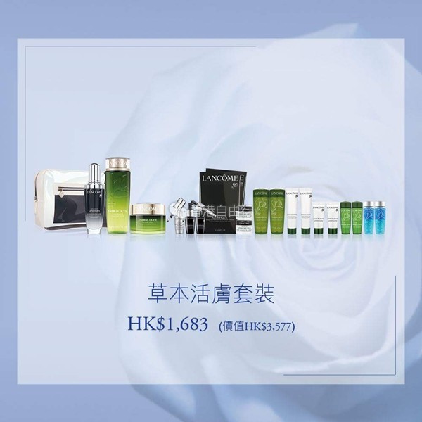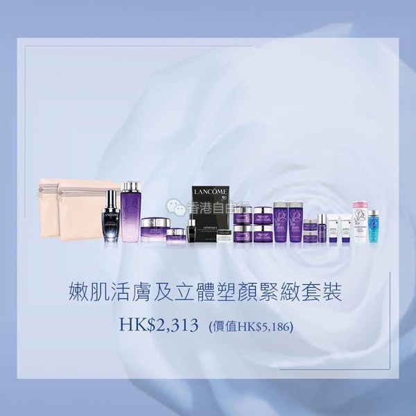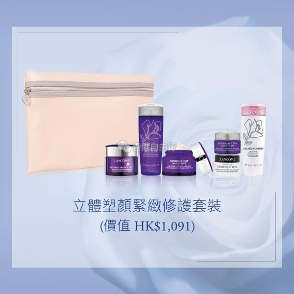 选购Lancôme正价产品满HK$1,050,即可获赠一套7件立体塑颜紧致修护套装 (价值HK$1091)。