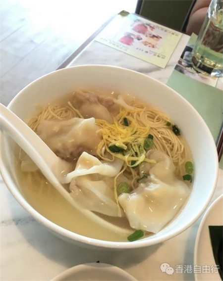 首先上的是鲜虾云吞拉面,搭配雪菜,很鲜甜!