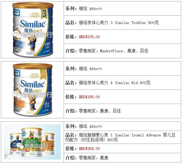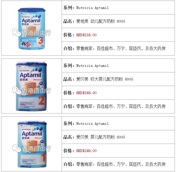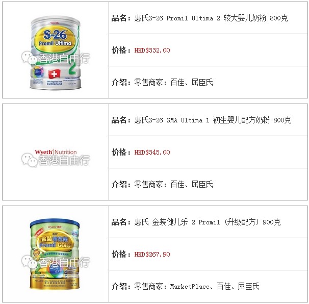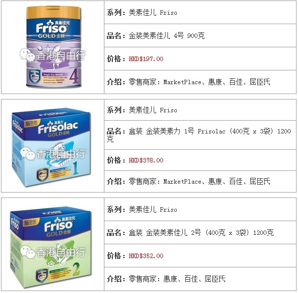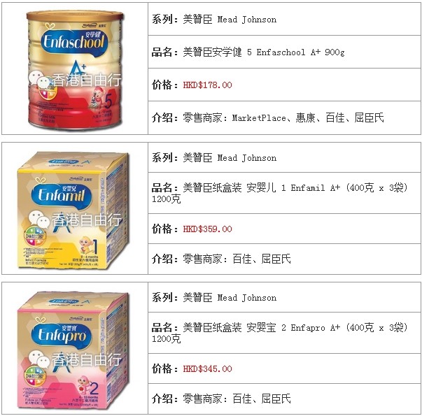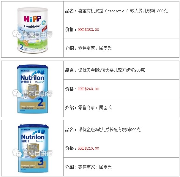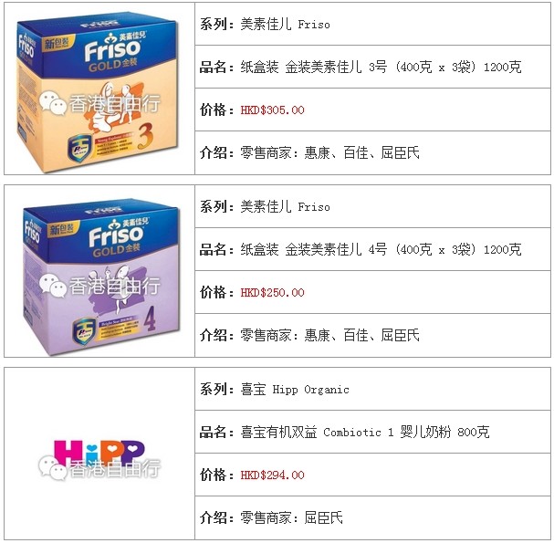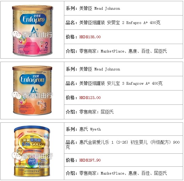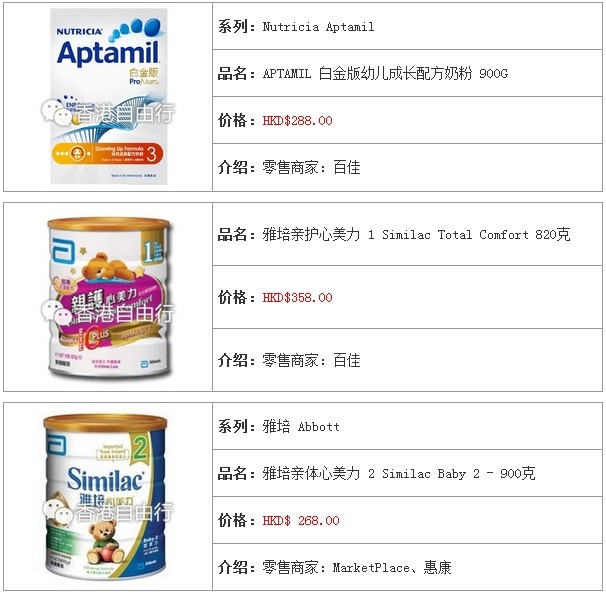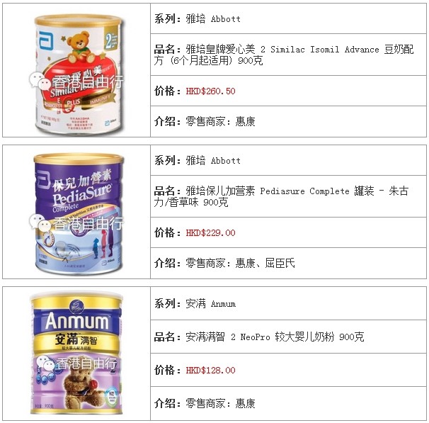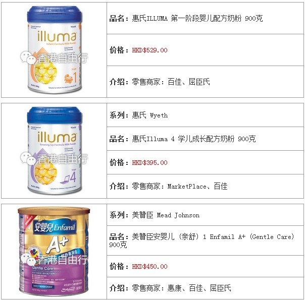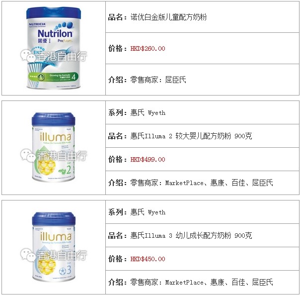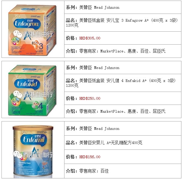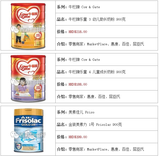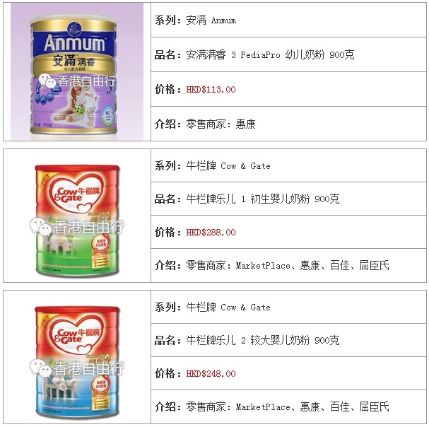 3.香港婴儿奶粉报价及销售点