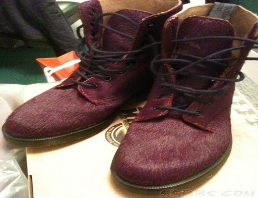 马毛的马丁靴,颜色很漂亮,比一般光面的那种感觉要轻,后来穿着这双鞋去CHANEL店里买东西,店员还问我是在哪里买的,说很漂亮,给我美的!靴子原价2300HKD,和羽绒服凑满8000,打了9折,要正价商品满8000才能打9折哦!