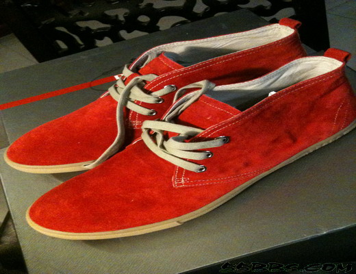 我们算是到的早的了,10点多吧,里面已经有些客人了,不过还没多到我头疼的地步,包包、衣服、鞋子、饰品都有,女装和BB的衣服我都没看,我自己做过服装,所以一般都不怎么看衣服,只收性价比高的!自己不哈prada的包,所以MIUMIU和PRADA的包包也都没关注,主要陪老公挑鞋子,去年在专柜看的鞋居然这里也有,专柜当时缺码,这里码子还算都有,基本是6折,老公收了两双,又买了件打底T,这时人开始多了,正如55上说的,思密达在耳边此起彼伏,老公还算眼明手快,立马下手,衣服转过头就没了!