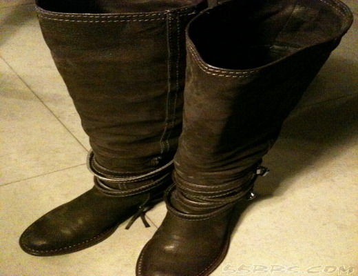 老公挑完东西,帮我选,看上这双MIUMIU的靴子,我腿偏细,所以穿直筒的靴子比较好看,这款感觉皮料还不错的,因为听好多MM说MIUMIU、巴黎世家这些的皮质也不是很好,所以一直不怎么买它们的东西,这款却是极为喜欢,原价8000多,打折下来5350