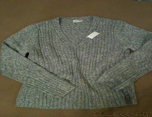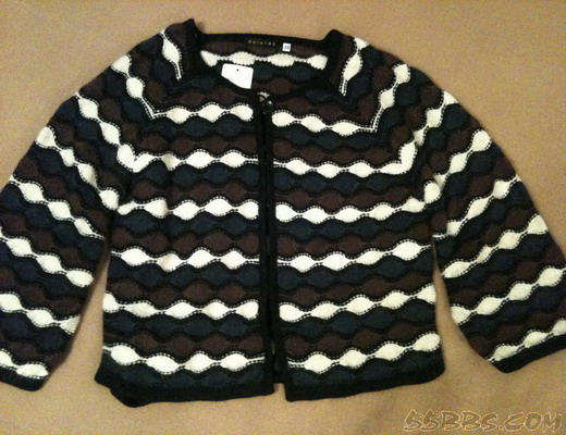 这件超级喜欢,是美国的一个行政牌子,安哥拉兔毛羊毛混纺的,亮片的缝制,翻过来看一点杂乱的线头都没有,本来码子我穿大了,但是实在喜欢颜色和图案,大有大的穿法和味道吧,HKD59