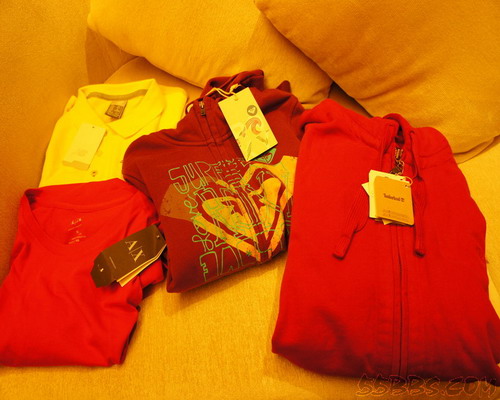 在东荟城收了四件衣服,人太多,逛的头痛,于是草草的收了几件就走人了。LG喜欢 红色,所以两件红的都是他的。