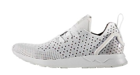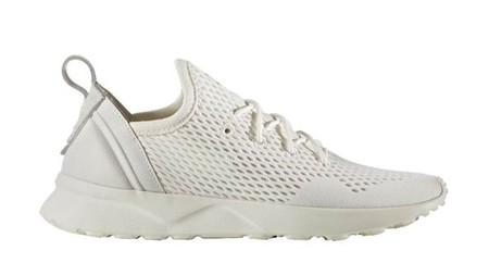 沿用ZX Flux鞋型,采用标志性的後跟设计和悬浮三间等独特标志,加上全白配色,打造简约外型。