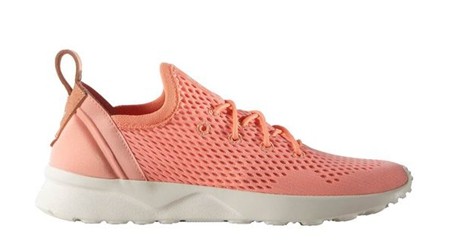ZX FLUX Virtue Sock女装鞋款亦备有粉红、深蓝及全白配色,以纯色配搭简约袜筒鞋型,缔造时尚格调。