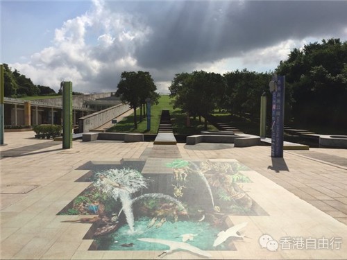 湿地公园位于米埔自然保护区的一角,占地不大,看起来走一圈半小时就足够了。这里的湿地公园主要是观鸟,在春秋两季候鸟迁徙的季节,在米埔观鸟是香港最热门的休闲项目,盛夏七月显然还不是最好的季节,我们也只是偶尔看见一两只小鸟在面前飞飞而已。我们来到湿地公园的门口只是九点,离十点钟开门还有一个小时的时间,由于返程车票已订,看起来是没办法入园了。门口的工作人员很nice的告诉我们,走上正门旁边的观景台,可以眺望湿地公园全貌,不错不错。虽然只是早上九点,太阳已经狠辣人了,我们躲在树荫下,静候旁边的一块云能飘过来充当一下遮阳扇,大约过了十分钟,太阳公公很屁合地钻进云层里,我们马上走上观景台。观景台前方就是米埔湿地公园,观景台上有(同视角)图片指引,告知游客哪里是观鸟亭,哪里是芦苇荡,哪里是蓄水区……甚至还指出了远处的一片高楼是深圳后海。不由得想起了13年春夏之交,我们登上雪朗峰的情景,观景台上也有类似的同视角图片指引,那是对面站立的是三位巨人,闻名世界的少女峰,僧侣峰和艾格峰