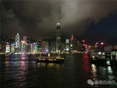 6:50的航船,大约7:10回到中环码头。按照我们的计划,准备过海到尖沙咀,看看“幻彩咏香江”。转到中环七号码头,坐天星小轮过尖沙咀,费用只要2.8港币,妈纸看价格也不贵,也就省得去换零钱买老人票了。天星小轮可以说是香港历史的见证,几十年了也没有太多变化,硬朗的外观,白绿相间的船身(当然现在也有部分船只是喷涂了广告),没有空调,船上刷得锃亮锃亮的木制长椅,上了年纪的水手,粗壮的缆绳。船程大约十分钟,穿梭于维港两岸,美丽的风光,让每一段旅程都丰富多彩,游客纷纷举起相机对着维港两岸的建筑,灯光不停地拍照。渡轮准备靠岸,水手熟练地解开缆绳,往岸上一抛,码头上的水手便将缆绳圈挂在码头上的立墩上,而船上的水手,根据船与码头的距离,不断调整缆绳的长度,松一圈紧两圈,缆绳被拉得吱吱嘎嘎响,坐在旁边生起一丝小惊恐,而一旁年轻的妈妈正在给身边的小帅锅解释水手的操作,小帅锅听得入神,还伸出手来跃跃欲试。确实这一板一眼的功夫,不定哪天就要被自动化取代,彼时这些水手的操作也只能在博物馆或者主题公园里寻觅了,希望这一天晚一点来。
