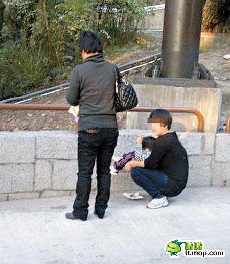昨日有网民在猫扑论坛,上载两张幼童随地排便的照片,标题分别为《不文明人士新春送『柑』系列!海洋公园多谢你……》及《蝗虫又周街屙!今次系旺角闹市中》,两张相片均可见到一名妇人蹲在路边,手抱的小童在排便,旁若无人,最恶心是幼童脚下已有「数嚿黄金」