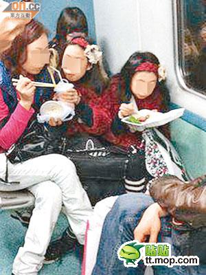 昨日,再有网民在猫扑论坛上载一张图片,标题为“蝗虫开餐了”,三名疑似内地女子在车厢内手持饭盒,肆无忌惮地进食。有关图片随即引起香港网民留言批评。
