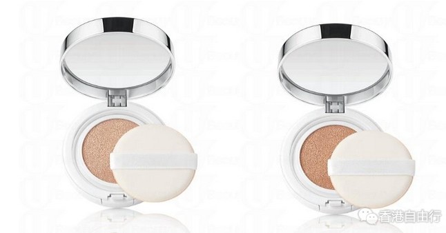 一般气垫粉底(左)、Fitting Cushion Foundation(右)