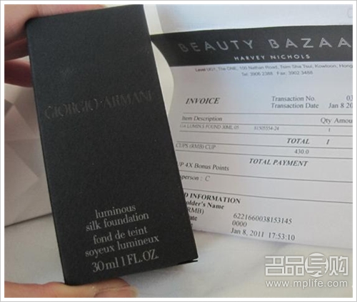 阿玛尼的粉底 430HKD 购于THE ONE