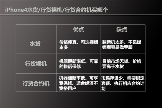 iPhone 4水货/行货裸机/行货合约机该买哪个?