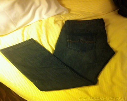 这两条牛仔裤购于东荟城,左边是LG的Timberland牛仔裤,HKD553元,7折,右边ROXY 7分裤,我的啦,HKD210元,对折的;