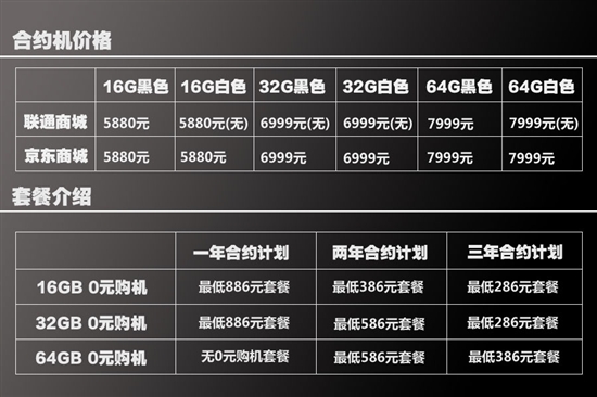 目前联通以及京东商城合约机售价