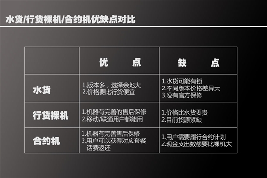 水货/行货裸机/合约机优缺点对比