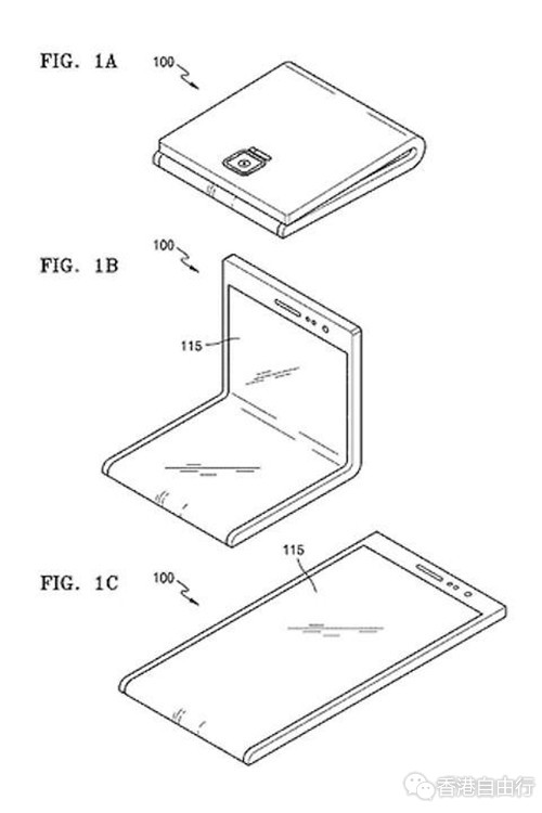 目前关于这款Galaxy X最多的消息来源还是关于三星申请的众多专利。而最近三星通过了美国专利商标局的一项最新专利是在上个月,从图片中我们看到一款像贝壳一样折叠的设备,或者说像化妆盒也可以,而打开之后就是一台传统的智能手机造型。