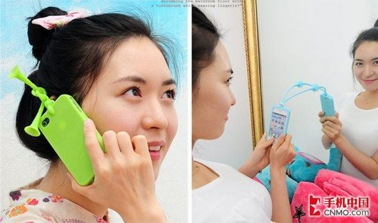 iPhone外壳从来不缺乏创意,这个可爱妹纸手中拿着的长触角蚱蜢外壳,搞怪的表情,玩得不亦乐乎,看来这个外壳不仅能保护爱疯,还能充当玩具哦。