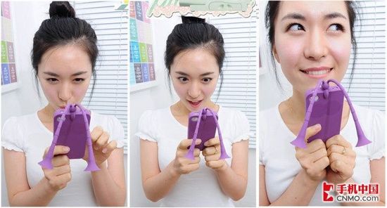 iphone外壳从来不缺乏创意,这个可爱妹纸手中拿着的长触角蚱蜢外壳,搞怪的表情,玩得不亦乐乎,看来这个外壳不仅能保护爱疯,还能充当玩具哦。