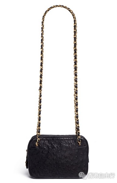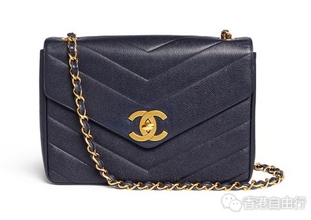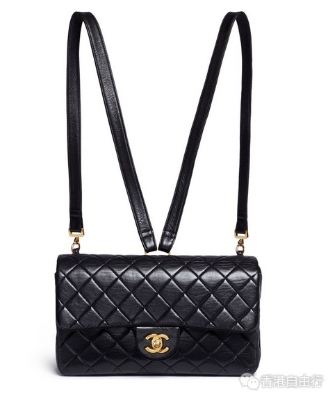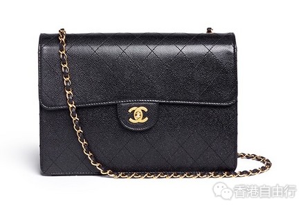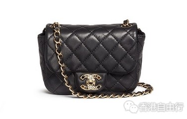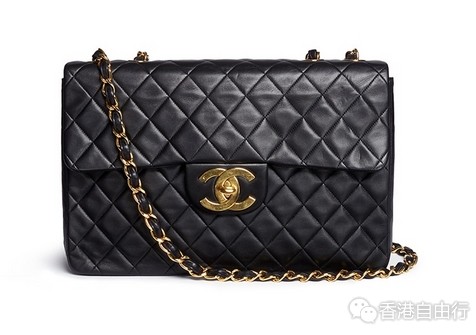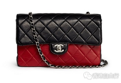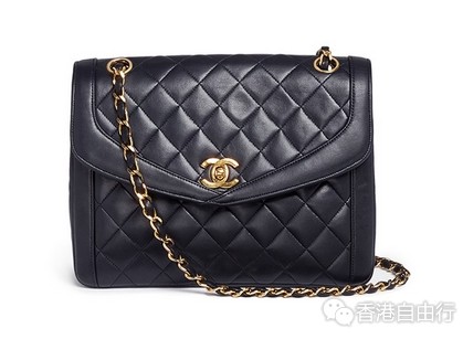 经典的Chanel黑色菱格纹手袋,使用短链带让手提时能有不一样的视觉。