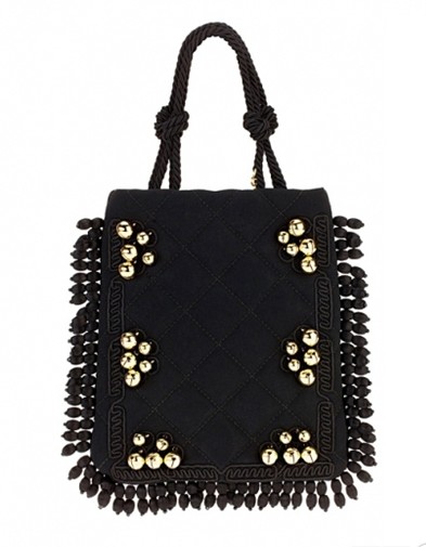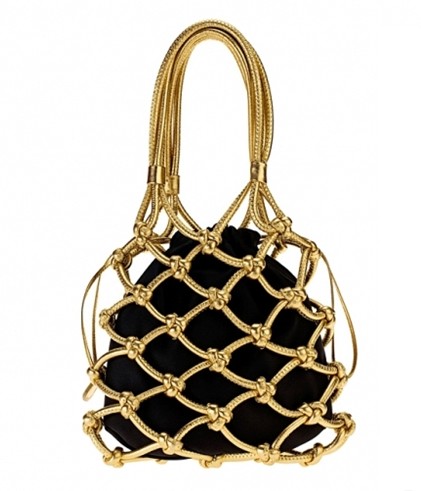 流苏状的麻绳购物袋非常具有名族风的特色,浅金色的珠珠装饰十分抢眼。