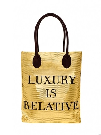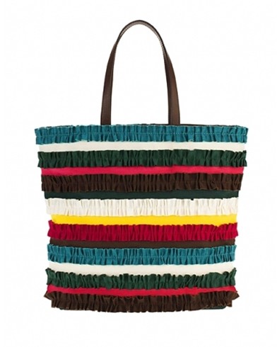 撞色拼接购物袋幽默俏皮,颇具喜剧色彩。