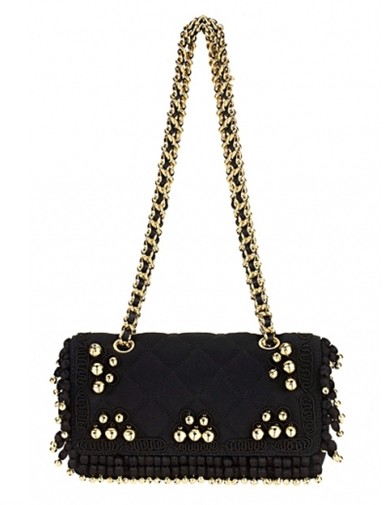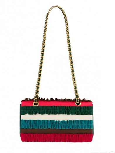 撞色拼接营造出颇具喜剧色彩的链条包包。