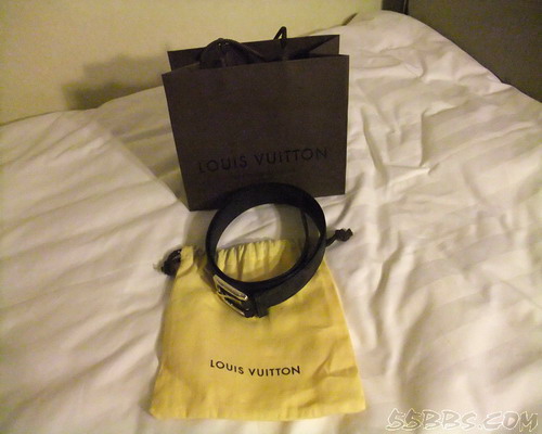 LV的皮带是蓝色的,酒店的灯光暗,颜色有些失真!价钱是港币2800元,人民币2282元