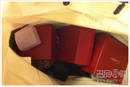 看到好几个cartier的红盒子。。再下面全是黄金的盒子。。。