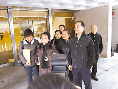镛记清盘桉,甘老太麦少珍(左二)将出庭作供,右后为甘健成。