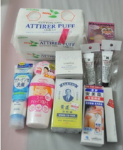 上面三个小的是送的洗发水,润肤乳和隔离霜