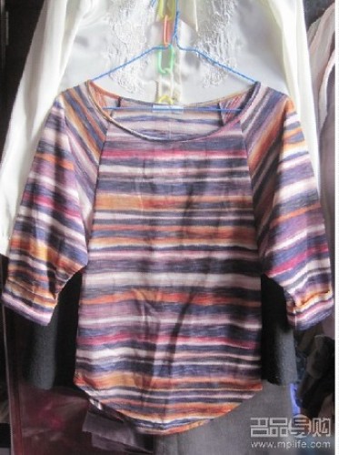 这件衣服要不是太太太喜欢,这价格我是不会买的,折合人民币也要193了吧,一件中袖t这个价格算贵的来,不过颜色真的很好卡啊,我觉得照片把它拍丑了。外加上身样子真的很好啊,还不显肚子,虽然是XS号,但小孩还是义无反顾的买回来啦,今年小孩要做条纹控咯~姐妹衫,朋友也买了一件一模一样的~