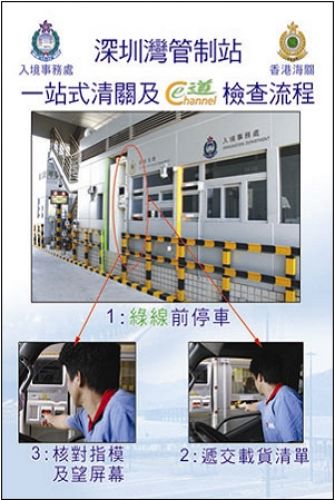 跨境货车司机可于深圳湾管制站使用一站式出入境检查及清关服务。有关检查流程请参阅以下示范图。