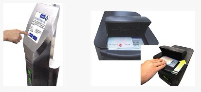 使用e-道以自助方式办理出入境手续是十分简易。你只须将智能身份证插入e-道前方的阅读器或把已登记的旅行证件/澳门身份证平放在证件阅读器上,经核实后闸门便会开启。进入e-道后,请把拇指平放于指纹扫描器上(如图示)。如果你是以拇指以外的其他手指登记,则须使用该手指来核实身份。