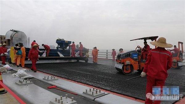 11月19日,港珠澳大桥管理局发布消息称,经过两天的奋战,港珠澳大桥桥梁工程CB06标钢桥面铺装首件制工程铺装施工顺利完成。这标志着CB06标钢桥面施工正式进入大范围实施阶段,为全面完成标段施工计划奠定坚实基础。