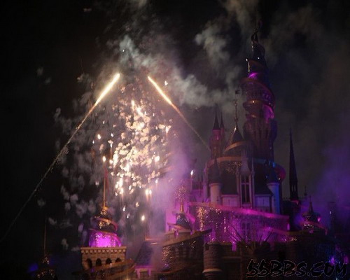 烟火即将开始,城堡亮灯是20:30,是不是很漂亮