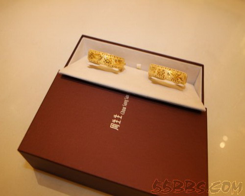 龙凤镯,妈妈让我自己去挑,香港金器价格低点,周生生在香港比周大福好,买一万以上手工费还可以打折。两只一共大概45克,21000HK